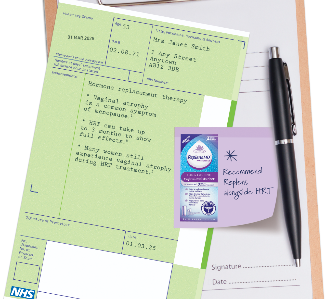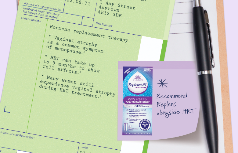 You can now request a free Replens MD™ patient trial pack as part of our Patient Familiarisation Programme designed to support conversations around vaginal dryness and long-lasting moisturisation alongside HRT.