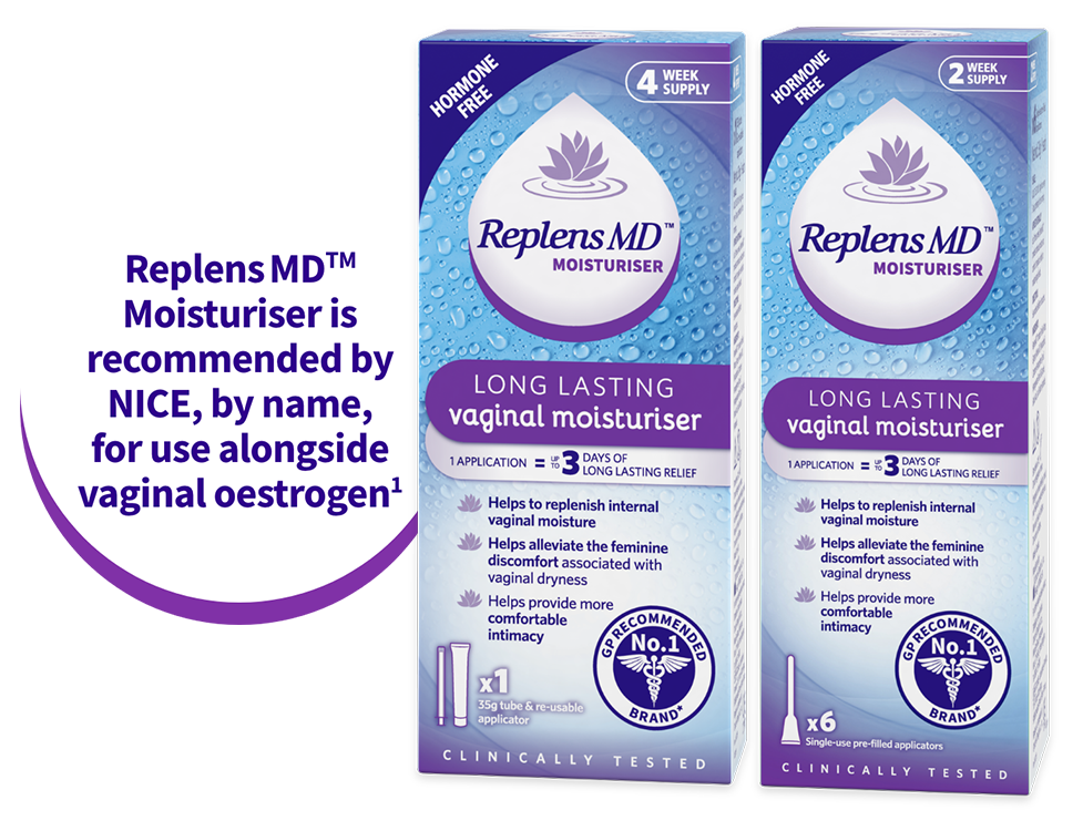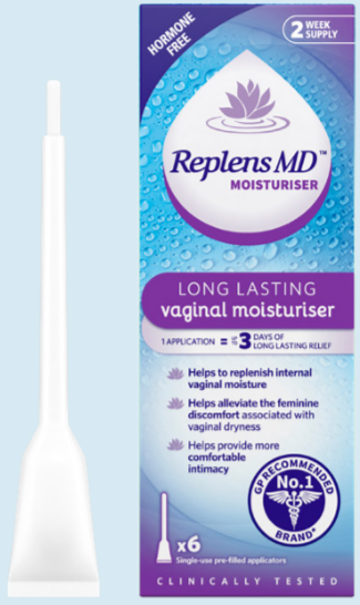 Replens MD™ Moisturiser provides immediate relief to dry vaginal cells. Hormone-free and can be used alongside HRT.